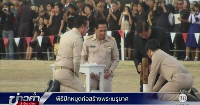 พิธีปักหมุดในการก่อสร้างพระเมรุมาศ งานพระราชพิธีถวายพระเพลิงพระบรมศพ พระบาทสมเด็จพระปรมินทรมหาภูมิพลอดุลยเดช บริเวณสนามหลวงฝั่งทิศใต้ เริ่มขึ้นแล้ว