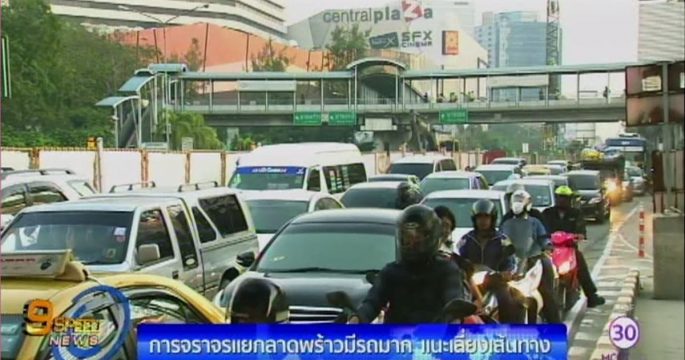 จราจรเช้าวันทำงานวันแรกบริเวณห้าแยกลาดพร้าว หลังมีการปิดช่องจราจรถนนพหลโยธินทั้งขาเข้า-ขาออก ด้านละ 1 ช่องทาง พบมีรถมาก แนะประชาชนหลีกเลี่ยงเส้นทาง