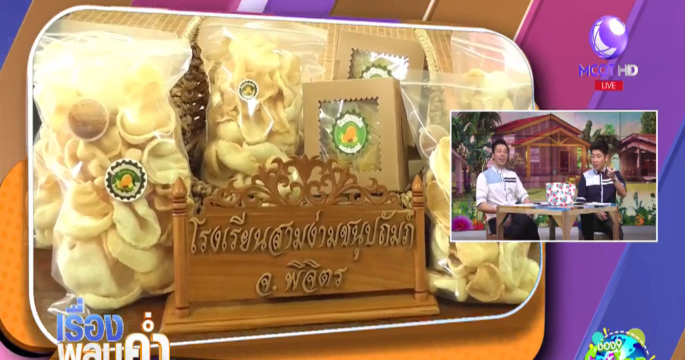 เด็กนักเรียนโรงเรียนสามง่ามชนูปถัมภ์ จ.พิจิตร นำมะม่วงที่ให้ผลผลิตตลอดทั้งปี มาผลิตเป็นข้าวเกรียบมะม่วงขายสร้างรายได้