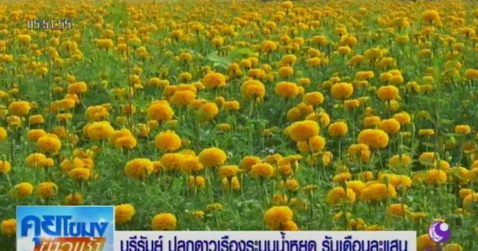 เกษตรกรบุรีรัมย์พลิกวิกฤติภัยแล้งและราคาข้าวที่ตกต่ำด้วยการปรับผืนนาปลูกดอกดาวเรืองระบบน้ำหยด สร้างรายได้เดือนละแสนบาท