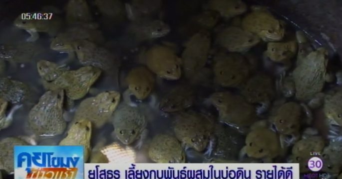 ชาวบ้านกุดกุง ต.กุดกุง จ.ยโสธร เลี้ยงกบพันธุ์ผสมในบ่อดิน ส่งขายช่วงหน้าแล้ง ราคากิโลกรัมละ 80-100 บาท สร้างรายได้เลี้ยงครอบครัว