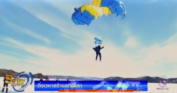 นักดิ่งเวหาชาวไซบีเรีย พยายามสร้างสถิติโลกด้วยการกระโดดจากความสูง 1,300 เมตร ลงสู่ช่องโพรงน้ำแข็งทะเลสาบไบคาล ซึ่งเป็นทะเลสาบน้ำจืดที่ลึกที่สุดในโลก