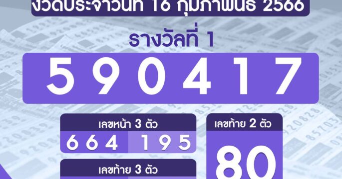 ผลรางวัลสลากกินแบ่งรัฐบาล งวดวันที่ 16 กุมภาพันธ์ 2566