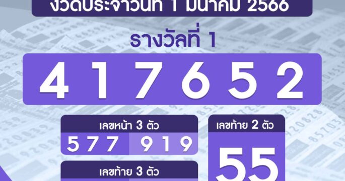 ผลรางวัลสลากกินแบ่งรัฐบาล งวดวันที่ 1 มีนาคม 2566