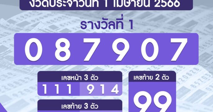 ผลรางวัลสลากกินแบ่งรัฐบาล งวดวันที่ 1 เมษายน 2566