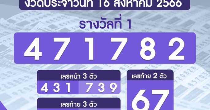 ผลรางวัลสลากกินแบ่งรัฐบาล งวดวันที่ 16 สิงหาคม 2566