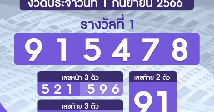 ผลรางวัลสลากกินแบ่งรัฐบาล งวดวันที่ 1 กันยายน 2566