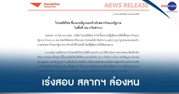 ไปรษณีย์ไทยเร่งสอบ ปัญหาถูกแอบอ้างรับสลากกินแบ่งรัฐบาล 45 เล่ม ในพื้นที่ ปณ.วารินชำราบ