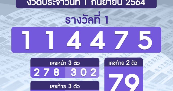 ผลรางวัลสลากกินแบ่งรัฐบาล งวดวันที่ 1 ตุลาคม 2564