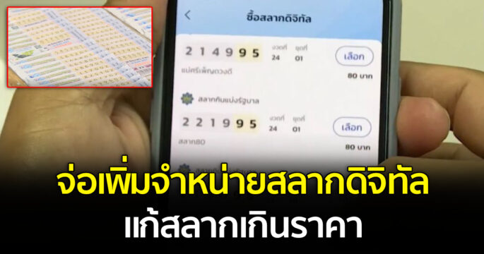 ขายหมดแล้ว “สลากดิจิทัล” งวดวันที่ 1 ก.ค.65 สนง.สลากฯ เตรียมชงบอร์ดสลาก 23 มิ.ย.นี้ เพิ่ม “สลากดิจิทัล” รองรับนักเสี่ยงโชค ซื้อสลากฯ 80 บาท