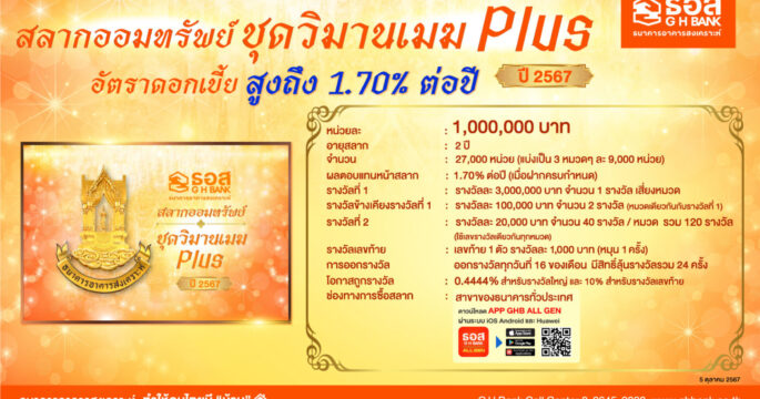 สลากออมทรัพย์ ธอส. ชุดวิมานเมฆ Plus ปี 2567