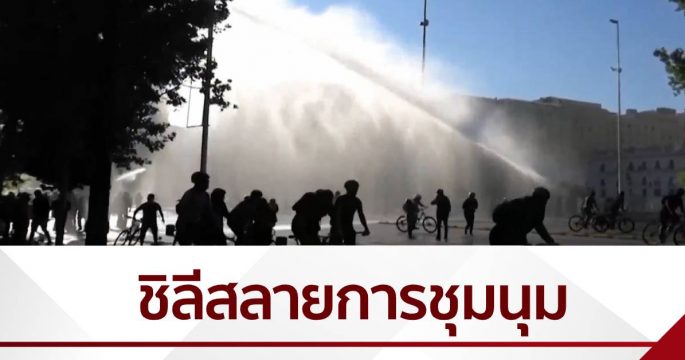 ตำรวจชิลีฉีดน้ำแรงดันสูงสลายการชุมนุม ของกลุ่มผู้ประท้วงในกรุงซานติอาโก ที่ออกมาเรียกร้องให้รัฐบาลปล่อยตัวผู้ชุมนุมที่ถูกจับกุมไปก่อนหน้านั้น