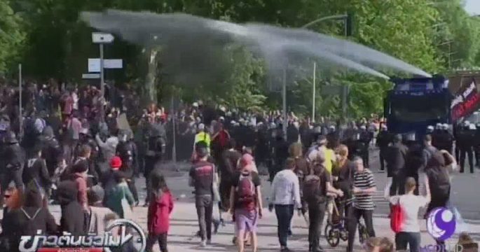 ตำรวจเยอรมนีในเมืองฮัมบูร์ก ใช้ท่อฉีดน้ำแรงดันสูงเข้าสลายฝูงชน ที่รวมตัวกันประท้วงการประชุมกลุ่ม จี 20 อย่างสงบ และลงเอยด้วยความรุนแรงเมื่อคืนนี้