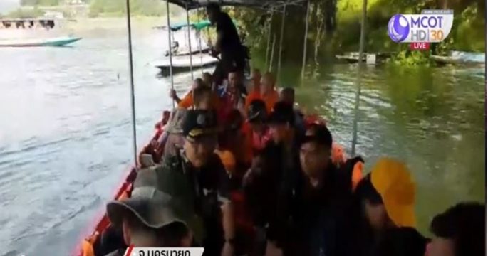 เจ้าหน้าที่กรมอุทยานแห่งชาติฯ นิมนต์พระสงฆ์ 4 รูป ลงเรือไปประกอบพิธีสวดบังสุกุลให้ช้างป่าที่พลัดตกน้ำตกเหวนรก