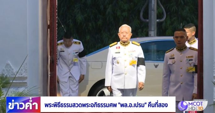 วันที่สองของพระพิธีธรรมสวดพระอภิธรรมศพ พล.อ.เปรม ติณสูลานนท์ ประธานองคมนตรีและรัฐบุรุษ ณ พระที่นั่งทรงธรรม วัดเบญจมบพิตรดุสิตวนารามราชวรวิหาร มีบุคคลสำคัญเข้าร่วมพิธีจำนวนมาก