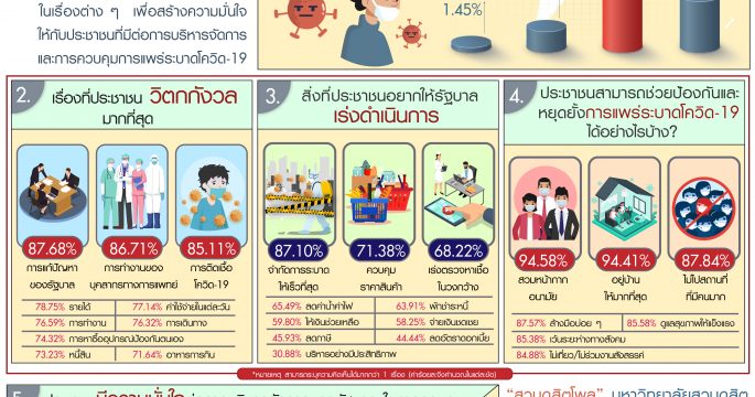 สวนดุสิตโพล พบความวิตกกังวลของคนไทยเกี่ยวกับโควิด-19 คือการแก้ปัญหาของรัฐบาล
