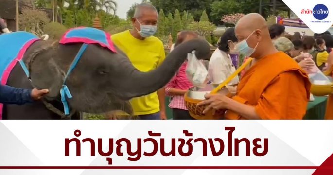 วันนี้เป็นวันช้างไทย ช้างแสนรู้น่ารัก 35 เชือก ร่วมกันทำบุญตักบาตรพระสงฆ์ 9 รูป พร้อมรับน้ำพระพุทธมนต์ ส่วนวังช้างอยุธยาแลเพนียด นิมนต์พระสงฆ์ 19 รูป บังสุกุลให้ช้างที่ล้มตาย