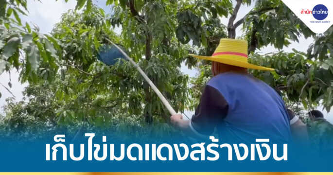 เกษตรกรปลูกมะม่วงและเลี้ยงมดแดงบนต้นมะม่วงที่ อ.กุดรัง จ.มหาสารคาม สร้างรายได้เสริมโดยการเก็บไข่มดแดงขาย ได้เงินเดือนละเป็นหมื่นบาท