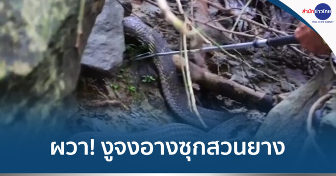ชาวบ้าน อ.ควนกาหลง จ.สตูลง ผวา! งูจงอางตัวใหญ่ยาว 5 เมตร อาศัยในสวนยาง จึงขอความช่ายเหลือจาก “บังยา” นักจับงูชื่อดัง มาช่วยจับไปปล่อยคืนป่าห่างไกลชุมชน