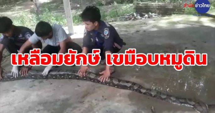 หนุ่มกู้ภัยผวา! เดินในสวนยางเห็นใบไม้ไหว เข้าไปดูถึงกับผงะเจองูเหลือมยักษ์กำลังเขมือบหมูดิน รีบโทรแจ้งเพื่อนกู้ภัยช่วยจับปล่อยคืนสู่ป่าลึก