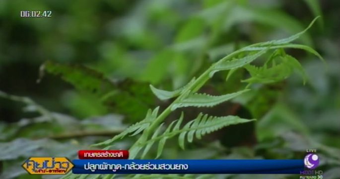 เกษตรกร จ.สงขลา ปลูกผักกูดเก็บส่งขายทุกวัน ภายในร่องสวนกล้วยที่อยู่ในสวนยางพารา โดยใช้วิธีพึ่งพาอาศัยกัน