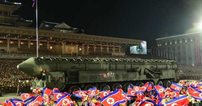 นายคิม จอง อึน ผู้นำสูงสุดของเกาหลีเหนือชมการสวนสนามของกองทัพเกาหลีเหนือ ซึ่งมีการแสดงแสนยานุภาพต่าง ๆ ซึ่งรวมถึงอากาศยานไร้คนขับ หรือ โดรนรุ่นใหม่และขีปนาวุธข้ามทวีป หรือ ไอซีบีเอ็มที่สามารถติดหัวรบนิวเคลียร์ได้ เพื่อรำลึกในวาระครบรอบการสิ้นสุดสงครามเกาหลี