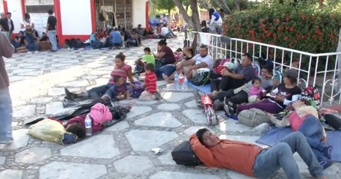 กลุ่มผู้อพยพชาวอเมริกากลางที่เดินทางมายังเมืองชายแดนทางเหนือของเม็กซิโกเพื่อหวังไปต่อในสหรัฐ ได้แวะที่เมืองเตปานาเตเปกและนอนพักตามสวนสาธารณะ