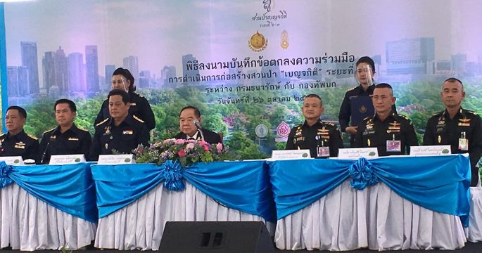 สวนเบญจกิติ 26 ต.ค.- “พล.อ.ประวิตร” เป็นประธาน MOU สร้างสวนป่าเบญจกิติ เฉลิมพระเกียรติฯ ใจกลางกรุงเทพฯ เนื้อที่ 320 ไร่ มุ่งส่งเสริม คุณภาพชีวิตและสิ่งแวดล้อม เพื่อคนกรุงเทพฯ