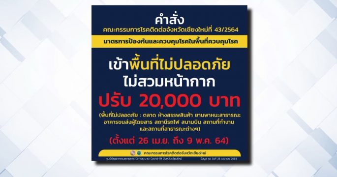 หลายจังหวัดออกประกาศยกระดับเพื่อป้องกันการแพร่ระบาดของ “โควิด-19” หากไม่สวมหน้ากากอนามัยหรือหน้ากากผ้าในที่สาธารณะจะมีโทษปรับ