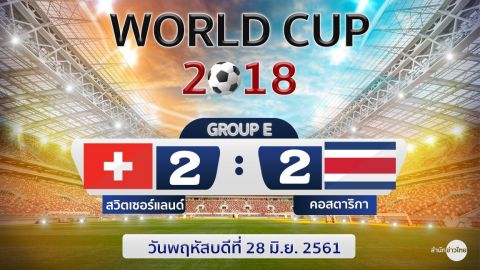 สวิตเซอร์แลนด์ ทำได้เพียงเสมอกับคอสตาริก้า 2-2 แต่ยังเข้ารอบ 16 ทีมสุดท้าย
