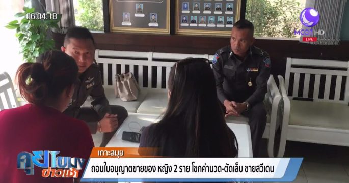 เกาะสมุยถอนใบอนุญาตขายของ 2 สาวเสื้อกั๊กชมพู ที่ถูกนักท่องเที่ยวชาวสวีเดนร้องเรียกค่านวด-ตัดเล็บแพงมหาโหดรวมถึง 3,500 บาท ขณะที่เจ้าตัวเข้าชี้แจงที่สถานีตำรวจท่องเที่ยวเกาะสมุย ยืนยันไม่เป็นความจริง คิดแค่ 2,000 บาท และนักท่องเที่ยวก็ยินดีจ่าย