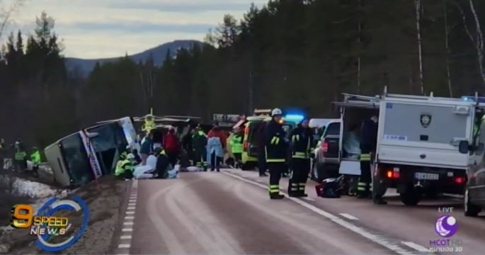 รถโดยสารพลิกคว่ำบนทางหลวงสายหลักเมืองสเวก ทางตอนกลางของประเทศสวีเดน มีผู้เสียชีวิตอย่างน้อย 3 คน บาดเจ็บอีก 25 คน