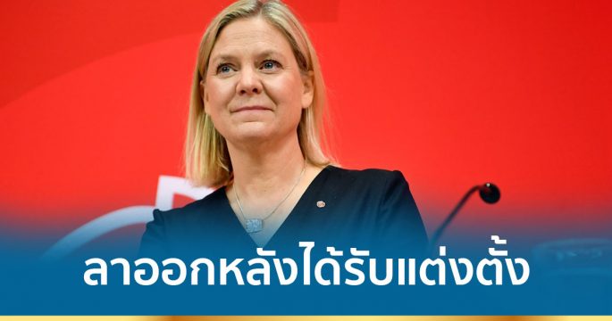 นายกรัฐมนตรีแม็กดาเลนา แอนเดอร์สสัน ซึ่งเป็นนายกรัฐมนตรีหญิงคนแรกของสวีเดนประกาศลาออกจากตำแหน่งเมื่อวันพุธตามเวลาท้องถิ่นหลังได้รับการแต่งตั้งเพียงไม่กี่ชั่วโมง เนื่องจากรัฐสภาสวีเดนไม่ผ่านร่างกฎหมายงบประมาณและพรรคพันธมิตรประกาศลาออกจากพรรคร่วมรัฐบาล