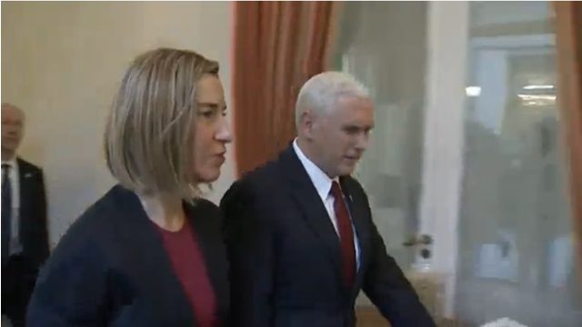 นายไมค์ เพนซ์ รองประธานาธิบดีสหรัฐกล่าวต่อบรรดาเจ้าหน้าที่ระดับสูงของสหภาพยุโรปหรือ อียู ที่กรุงบรัสเซลส์ของเบลเยียม ในวันนี้