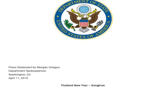 โฆษกกระทรวงการต่างประเทศสหรัฐฯ อวยพรคนไทยเบิกบานใจในเทศกาลสงกรานต์ยันเดินหน้าสานสัมพันธ์ให้แน่นแฟ้น