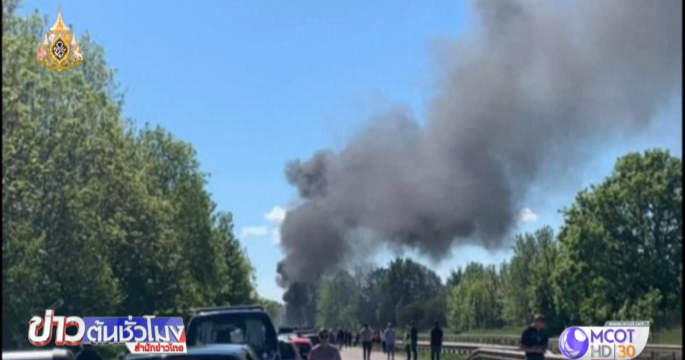 เครื่องบินเล็กตกบนถนน และไฟลุกไหม้ ในแคว้นเวลส์ คนบนเครื่อง 3 คนบาดเจ็บ