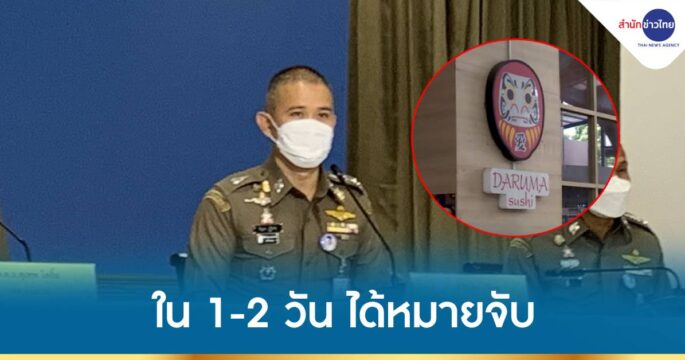 ตำรวจ คาดภายใน 1-2 วัน ได้หมายจับเจ้าของร้าน “ดารุมะ ซูชิ” ประชาสัมพันธ์ผู้เสียหายสามารถมาแจ้งความได้ที่สอบสวนกลาง หรือแจ้งความออนไลน์ ผ่านศูนย์ PCT ของสำนักงานตำรวจแห่งชาติ