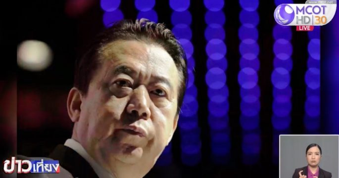 จีนยืนยันประธานอินเตอร์โพลที่หายตัวไป ถูกทางการจีนจับกุมตัวไปสอบสวน ขณะที่ภรรยาของประธานอินเตอร์โพล เผยสามีส่งรูปมีดมาให้ ซึ่งเธอเชื่อว่าเป็นการส่งสัญญาณว่าเขาตกอยู่ในอันตราย