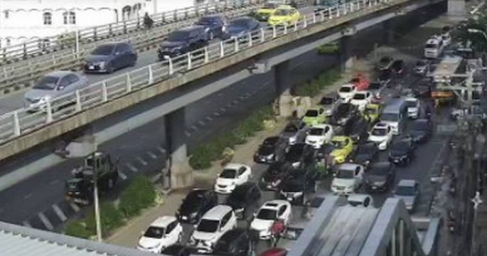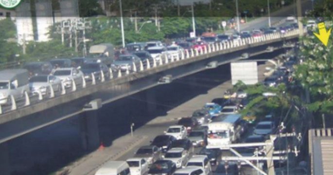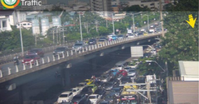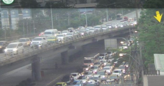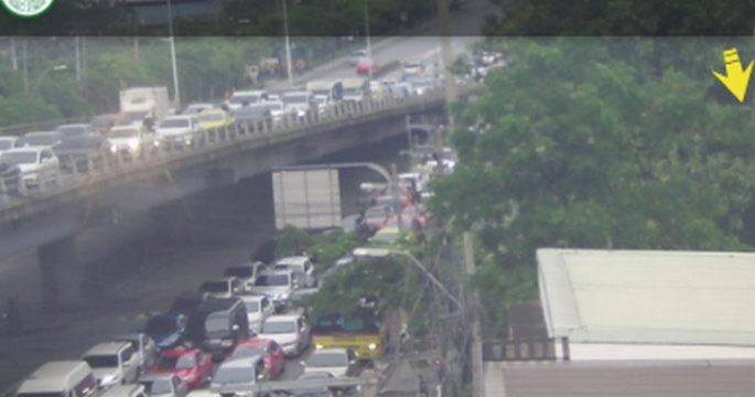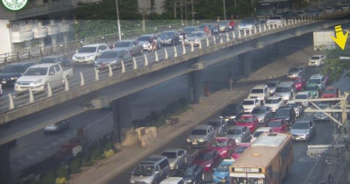 สวพ.FM91 รายงานจราจรเช้าวันพุธ บนสะพานกรุงธน ขาเข้า มุ่งหน้าถนนขาว, ถนนสามเสน การจราจรติดขัดมาก ท้ายแถวสะสมอยู่ที่ตรงข้ามห้างตั้งฮั่วเส็ง