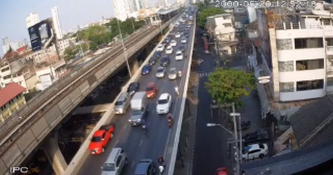 จราจรเช้าวันพฤหัสบดี สะพานสมเด็จพระเจ้าตากสิน ขาเข้า ติดขัด ท้ายแถวสะสมหน้าอาคารสินสาธรทาวเวอร์