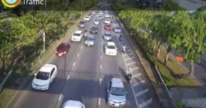 จราจรเช้าวันพุธ ถนนกรุงธนบุรี ขาเข้า ข้ามสะพานตากสิน เข้าถนนสาทรเหนือ รถมาก ส่วนถนนสุขุมวิท ขาเข้า มุ่งหน้าแยกบางนา รถติดขัดมาก