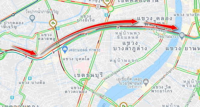 ถนนกรุงธนบุรี มุ่งขึ้นสะพานตากสิน รถหนาแน่น
