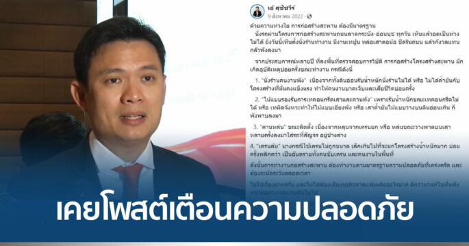 ย้อนโพสต์ “ดร.เอ้ สุชัชวีร์” เคยเตือนปัญหาหลายอย่างของการก่อสร้างทางยกระดับถนนอ่อนนุช-ลาดกระบัง เมื่อปีที่แล้ว สุดท้ายพังลงมา มีคนสูญเสียจนได้