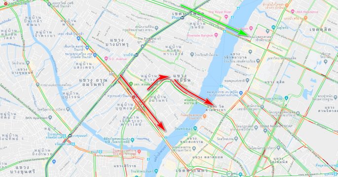 จราจรเช้าวันพฤหัสบดี คู่ขนานลอยฟ้า ข้ามสะพานพระราม 8 รถมาก เคลื่อนตัวช้า ท้ายแถวสะสมเหนือแยกอรุณอมรินทร์