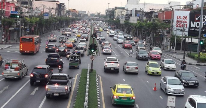 จราจรเช้าวันพฤหัสบดี ถนนประชาธิปก ผ่านแยกบ้านแขก มุ่งหน้าสะพานพุทธฯ สะพานพระปกเกล้า รถมาก เคลื่อนตัวได้