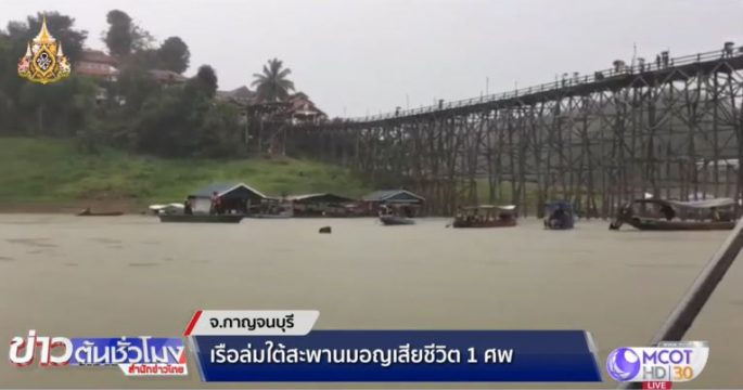 เรือเล็กล่มใต้สะพานมอญ จ.กาญจนบุรี ชายอายุ 34 ปีจมน้ำเสียชีวิต หลังหมดแรงเพราะช่วยภรรยาและลูกสาวที่ว่ายน้ำไม่เป็น