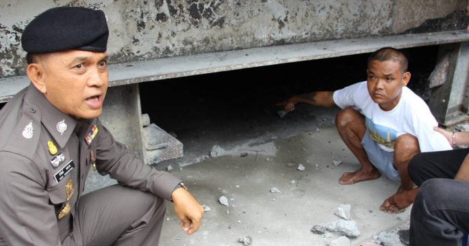 ตำรวจคุมผู้ต้องหาวางเพลิงสะพานไทย-เบลเยี่ยม ทำแผนประกอบคำรับสารภาพ เจ้าตัวยืนยันไม่มีเจตนาวางเพลิง แต่เกิดจากความประมาททิ้งก้นบุหรี่