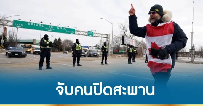 วินด์เซอร์ 13 ก.พ.- ตำรวจแคนาดาจับกุมผู้ประท้วงปิดกั้นสะพานสำคัญที่ข้ามพรมแดนไปยังสหรัฐเป็นรายแรกเมื่อวันเสาร์ หลังจากพยายามหาทางยุติการปิดกั้นด่านที่เป็นเส้นทางการค้าสำคัญระหว่างสองประเทศ กลุ่มผู้ประท้วงต่อต้านมาตรการที่รัฐบาลแคนาดาใช้จำกัดการแพร่ระบาดของโรคติดเชื้อไวรัสโคโรนา 2019 หรือโควิด-19 ได้นำยวดยานมาปิดกั้นทั้งสองฝั่งของสะพานแอมบาสซาเดอร์ที่เชื่อมเมืองวินด์เซอร์ รัฐออนแทรีโอของแคนาดากับเมืองดีทรอยต์ รัฐมิชิแกนของสหรัฐมาตั้งแต่วันจันทร์ ทำให้การค้าระหว่างประเทศติดขัด เพราะสะพานเก็บค่าผ่านทางนี้เป็นด่านข้ามพรมแดนทางบกที่พลุกพล่านที่สุดของอเมริกาเหนือ ตำรวจแคนาดาสามารถผลักดันผู้ประท้วงออกจากเชิงสะพานได้แล้ว แต่ก็มีคนเข้ามาสมทบเพิ่มขึ้นจนการจราจรเป็นอัมพาต และมีการจับกุมชายวัย 27 ปี ข้อหากระทำความผิดอาญาที่เกี่ยวข้องกับการประท้วง นับเป็นผู้ปิดกั้นสะพานที่ถูกจับกุมเป็นรายแรก นายกรัฐมนตรีจัสติน ทรูโดของแคนาดาย้ำระหว่างประชุมคณะที่ปรึกษาเมื่อวันเสาร์ว่า ไม่สามารถปล่อยให้สะพานถูกปิดกั้นได้ และพร้อมพิจารณาทางเลือกทุกอย่าง ขณะที่ประธานาธิบดีโจ ไบเดนของสหรัฐเรียกร้องให้ผู้ประท้วงยุติการปิดกั้นสะพาน จำนวนผู้ประท้วงในเช้าวันเสาร์ลดลงเล็กน้อยจากคืนวันศุกร์ที่มีประมาณ 200 คน นักวิชาการในแคนาดามองว่า การที่ผู้ประท้วงยังไม่สลายตัว ทั้งที่ศาลมีคำสั่งตั้งแต่วันศุกร์ให้ยุติการปิดกั้นสะพาน และรัฐออนแทรีโอประกาศสถานการณ์ฉุกเฉิน สะท้อนว่าทางการไม่สามารถควบคุมสถานการณ์ได้ ยิ่งปล่อยให้ยืดเยื้อ ยิ่งทำให้ผู้ประท้วงคิดว่าสิ่งที่ทำอยู่ไม่ผิดกฎหมาย ตำรวจแคนาดาระบุว่า การประท้วงได้รับเงินบางส่วนจากผู้สนับสนุนในสหรัฐ ด้านรัฐออนแทรีโอได้ระงับเงินที่บริจาคผ่านแพลตฟอร์มกีฟเซ็นด์โก (GiveSendGo) ของสหรัฐแล้วตั้งแต่วันพฤหัสบดี.-สำนักข่าวไทย