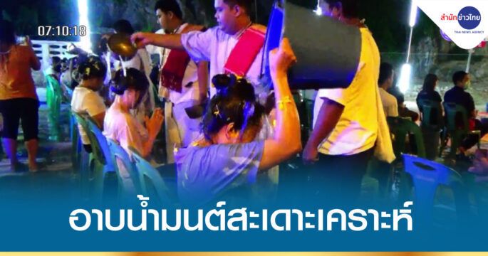 ชาวต่างชาติสนใจพิธีอาบน้ำมนต์สะเดาะเคราะห์ของวัดโคกสูง อ.หาดใหญ่ จ.สงขลา สืบทอดจากหลวงพ่อพลัด อดีตเจ้าอาวาสที่มรณภาพแล้วสังขารไม่เน่าเปื่อย