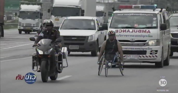 หนุ่มพิการวัย 40 ปี ปั่นวีลแชร์มาจาก จ.ระนอง ตั้งแต่วันที่ 1 พ.ย. เพื่อไปถวายสักการะพระบรมศพ ระยะทางรวมกว่า 600 กม. ล่าสุดถึง จ.สมุทรสาครแล้ว